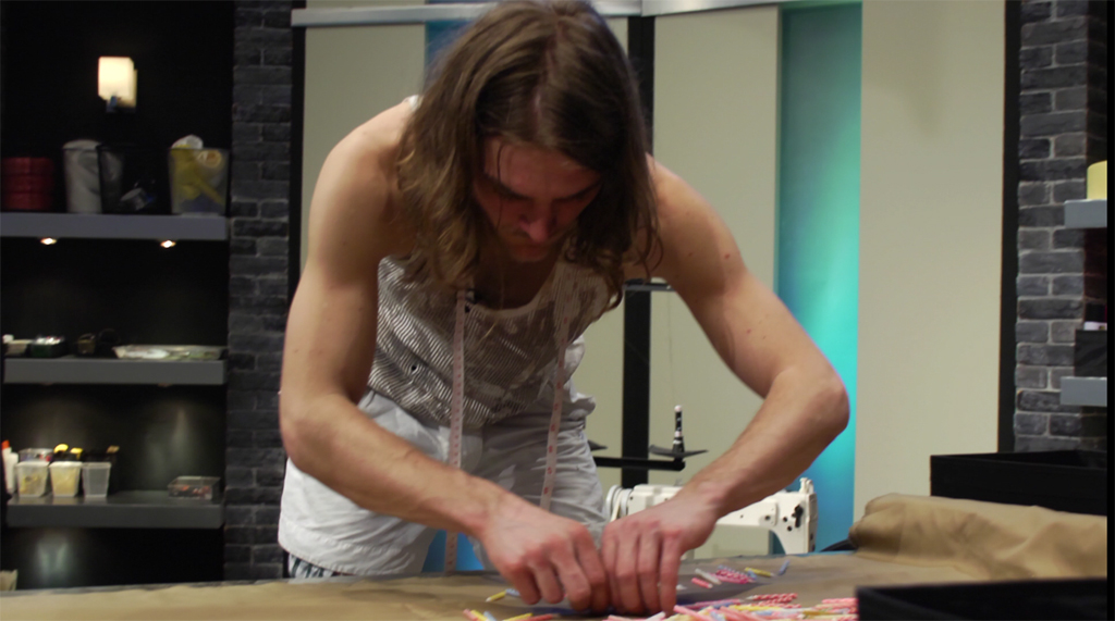 Life's no party for the Designers in this episode. With the inspiration of a classical guitar, which must be referenced throughout all challenges, the designers create an accessory from hard candy, an undergarment from balloons and rounds off with a wardrobe apparel piece made from mini birthday cake candles.