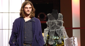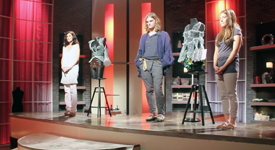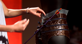 If you can't stand the heat get out of the kitchen. Designers are pushed to their creative limits and tempers will flare throughout these challenges. Using plastic cutlery to create an accessory, cupcake patties for the undergarment and the finger cutting steel wool for the wardrobe piece. The inspiration? A crossbow of course! Only two will go through to the final and compete for the title of Design Genius.