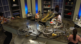 Design Genius junkyard fashion is anything but trashy. In this series final the designers will be creating high fashion garments using items found in a landfill. The designers will need to be ingenious and maintain composure to get through these challenges. An accessory will be made from used bicycles (of which they must take apart themselves), an undergarment using discarded broken chairs and a wardrobe apparel piece using busted umbrellas.